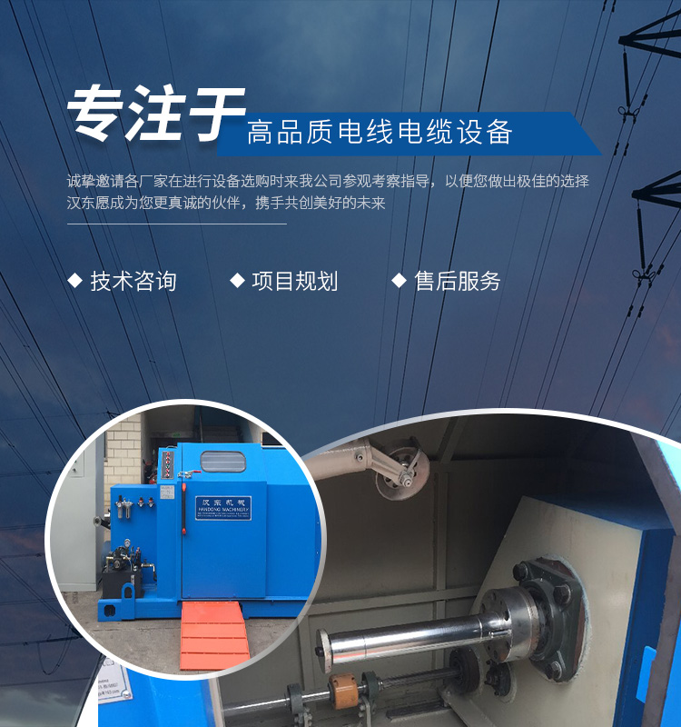 常州漢東機(jī)械始創(chuàng)于2006年,是集電線電纜機(jī)械設(shè)計(jì)、開(kāi)發(fā)、制造、安裝、調(diào)試為一體化的高科技企業(yè)。本公司自開(kāi)業(yè)以來(lái),積極引進(jìn)日本,歐美等國(guó)外電線電纜設(shè)備之先進(jìn)技術(shù),先后成功推出了達(dá)到行業(yè)先進(jìn)水平的電線電纜設(shè)備,主要產(chǎn)品有擠出、繞包、束線、成纜等電線電纜固定設(shè)備。在提供系統(tǒng)設(shè)備的同時(shí),還向客戶提供售前技術(shù)咨詢、項(xiàng)目規(guī)劃、以及售后服務(wù)。我公司本著“以人為本、科技先導(dǎo)、用戶為上”的宗旨,為客戶提供牢靠的產(chǎn)品與省心的服務(wù)。漢東愿成為您更真誠(chéng)的伙伴,攜手共創(chuàng)美好的未來(lái)!